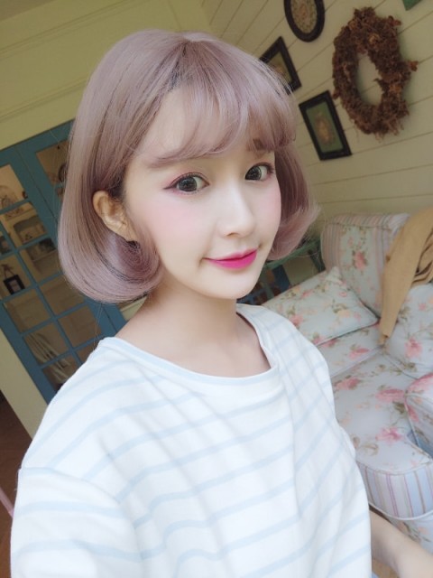 wig,假髮,放電機,大頭皮,自由分線,空氣瀏海,短髮,玫瑰灰粉